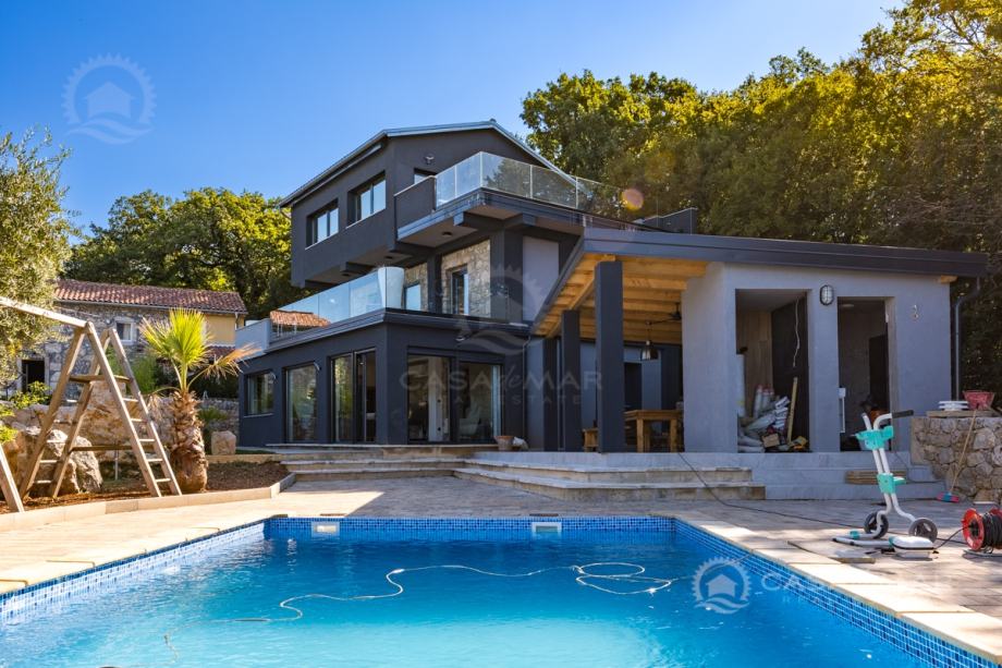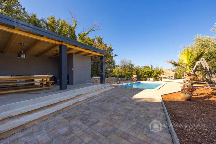 Renovirana samostojeća moderna kamena kuća s bazenom