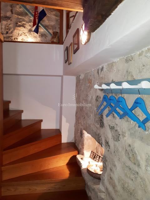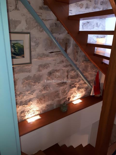 Prodaje se lijepo renovirana kamena kuća na mirnoj lokaciji, u ulici bez prometa u Betini na otoku Murteru.Kuća ukupne bruto površine cca.100 m2 proteže se na prizemlje, prvi i drugi kat. Sve etaže su povezane unutarnjim stepenicama. U kući se nalazi kuhinja i dnevni boravak, dvije spavaće sobe, kupaonica, toalet i mala terasa na vrhu. Kuća je kompletno klimatizirana, moderno uređena i opremljena s kvalitetnim namještajem. U blizini se nalazi javni parking.
