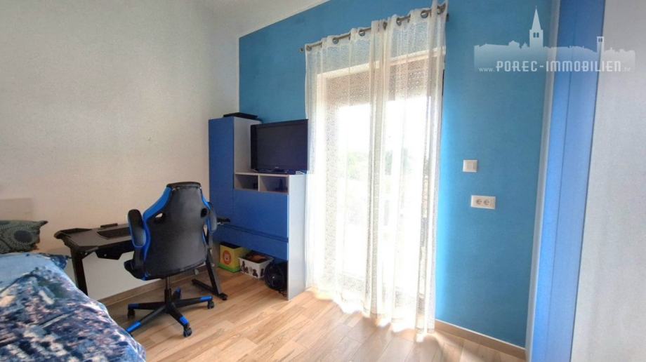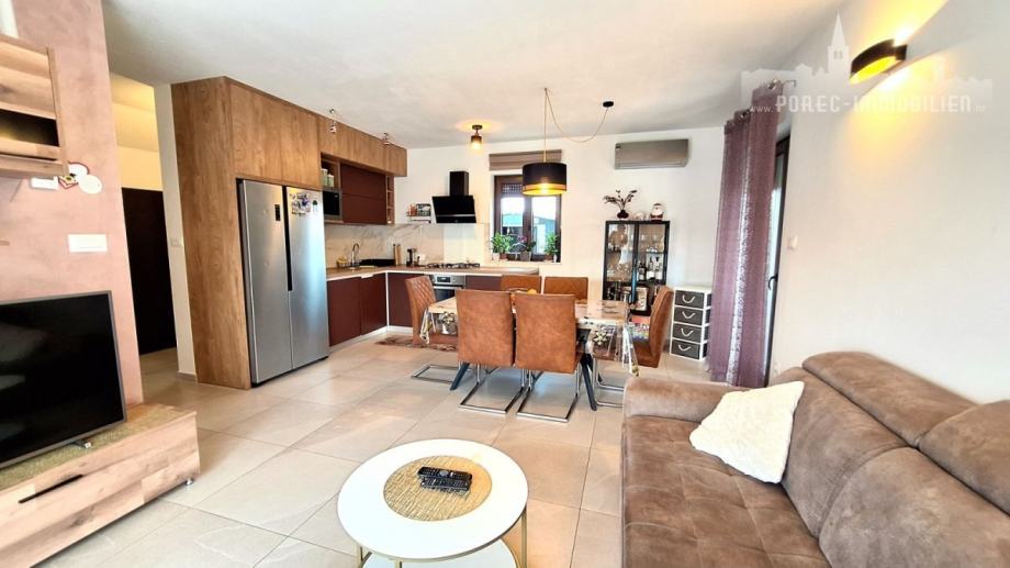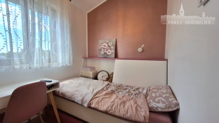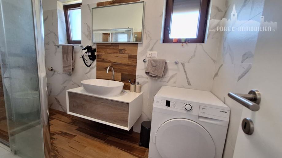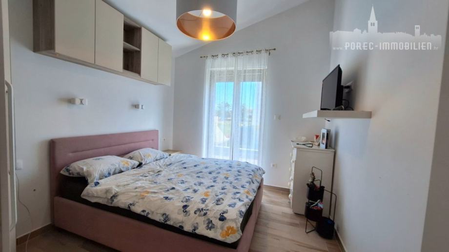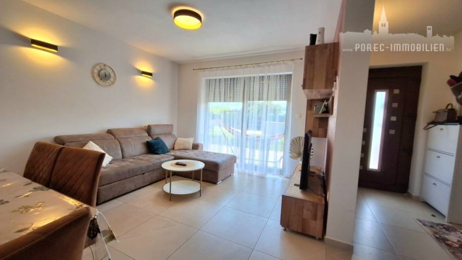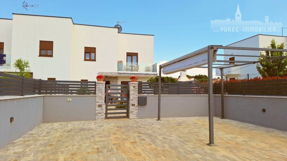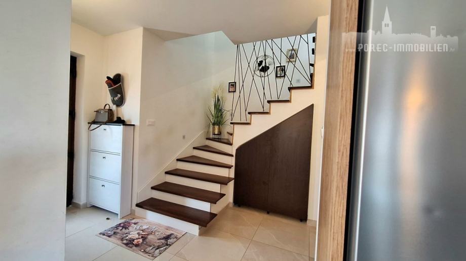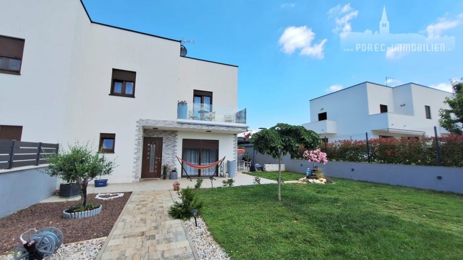 Na prodaju je moderna dvojna kuća u blizini Poreča, udaljena svega nekoliko stotina metara od centra manjeg istarskog mjesta. Kuća ukupne površine 110 m² sagrađena je na zemljištu od 300 m² i prostire se na prizemlje i kat.