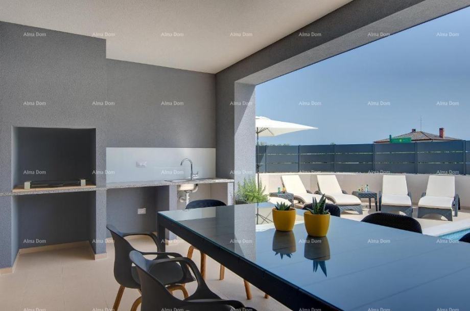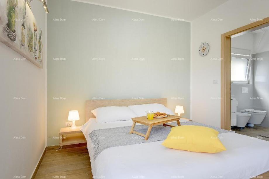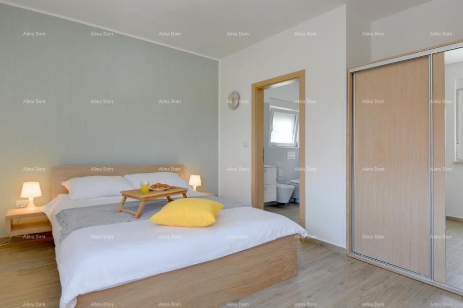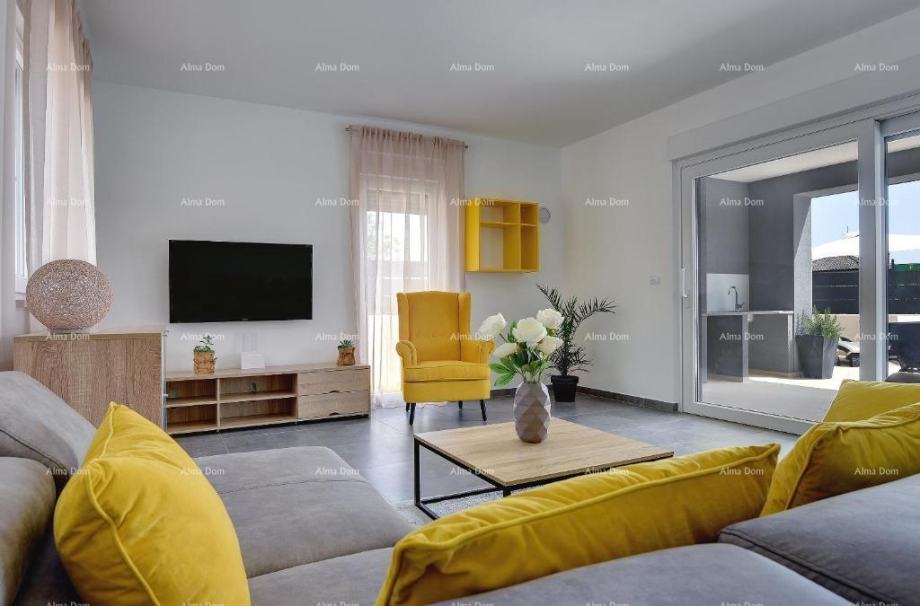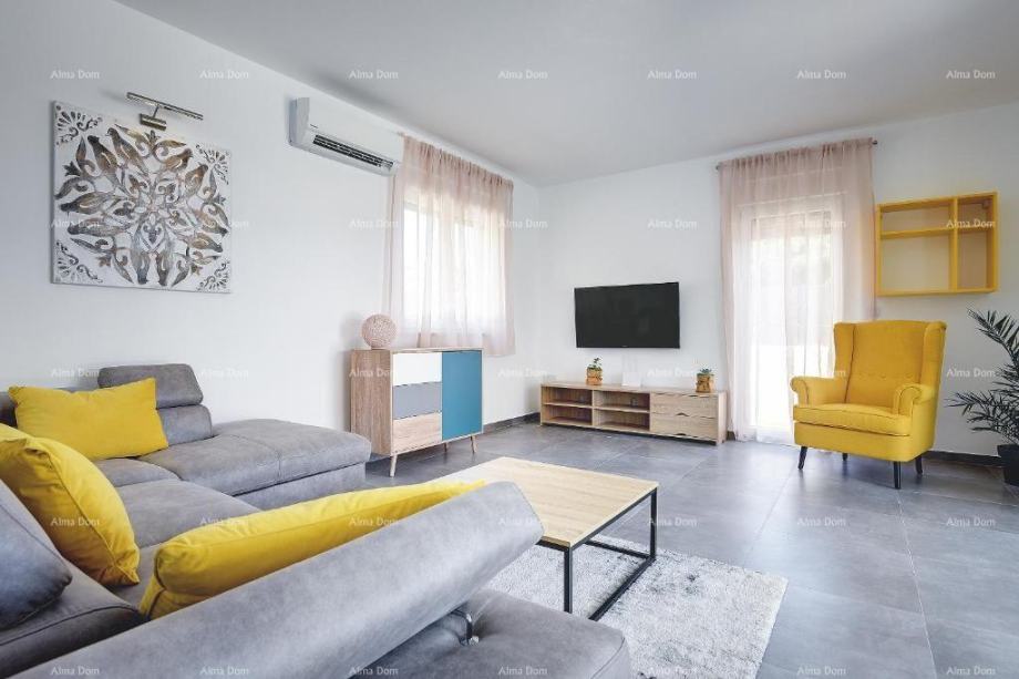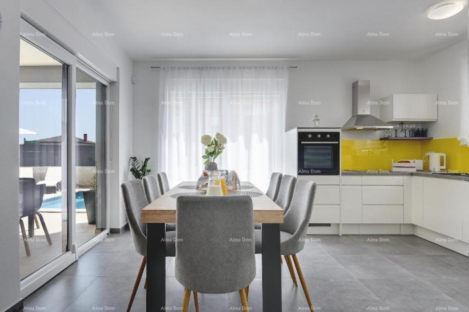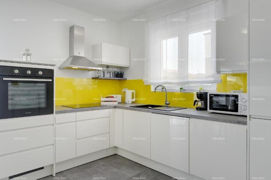 Sastoji se od prizemlja i kata. U prizemlju se nalazi ulazni hodnik, kupaonica, prostrani dnevni boravak te kuhinja s blagavaonciom. Iz dnevnog boravka se izlazi na prostranu terasu gdje se nalazi veliki stol te ljetna kuhinja, te vrt gdje se nalazi sunčakište te bazen veličine 4 x 8 metara. Na katu kuće se nalaze 3 spavaće sobe s kupaonicama.