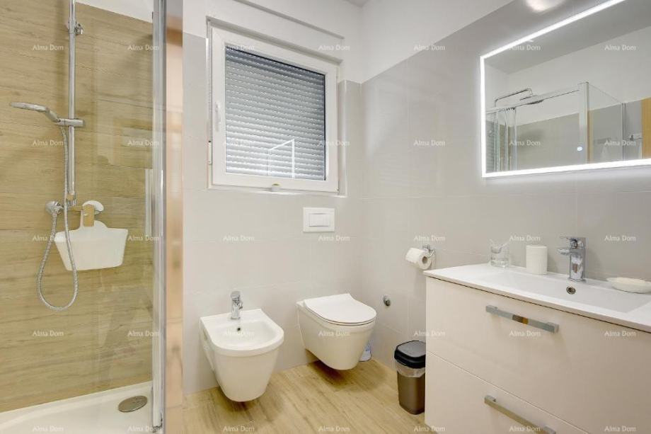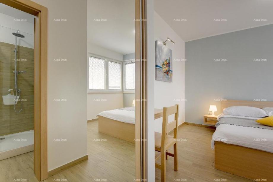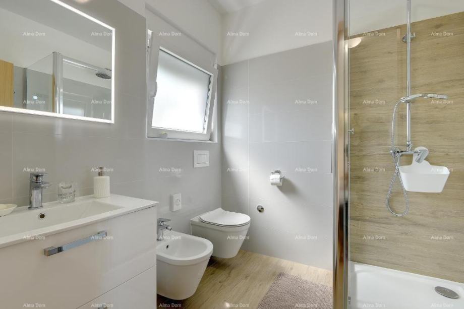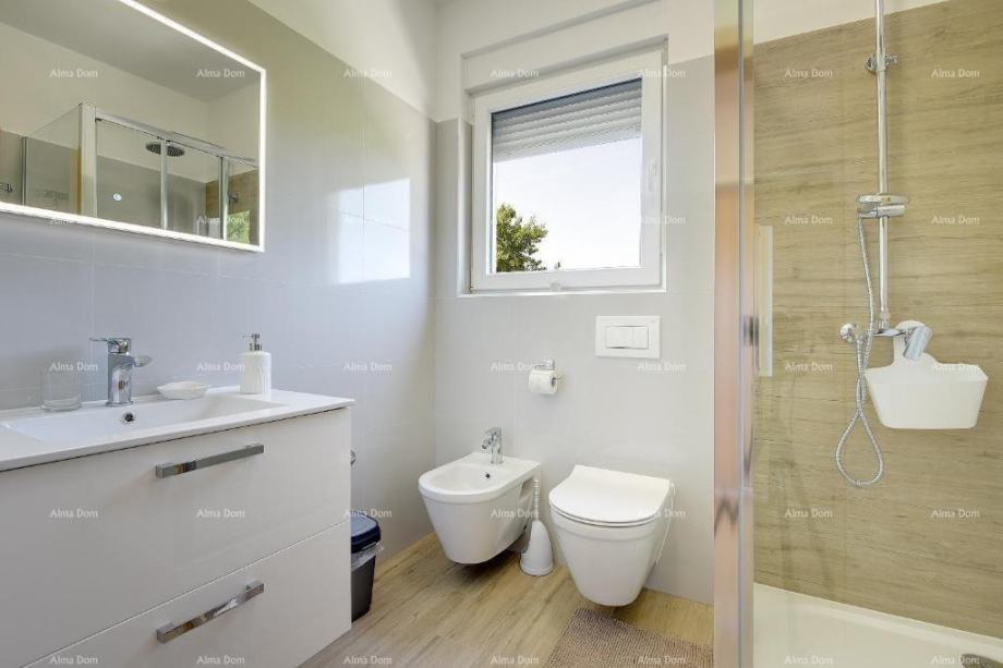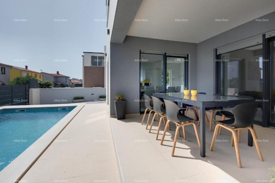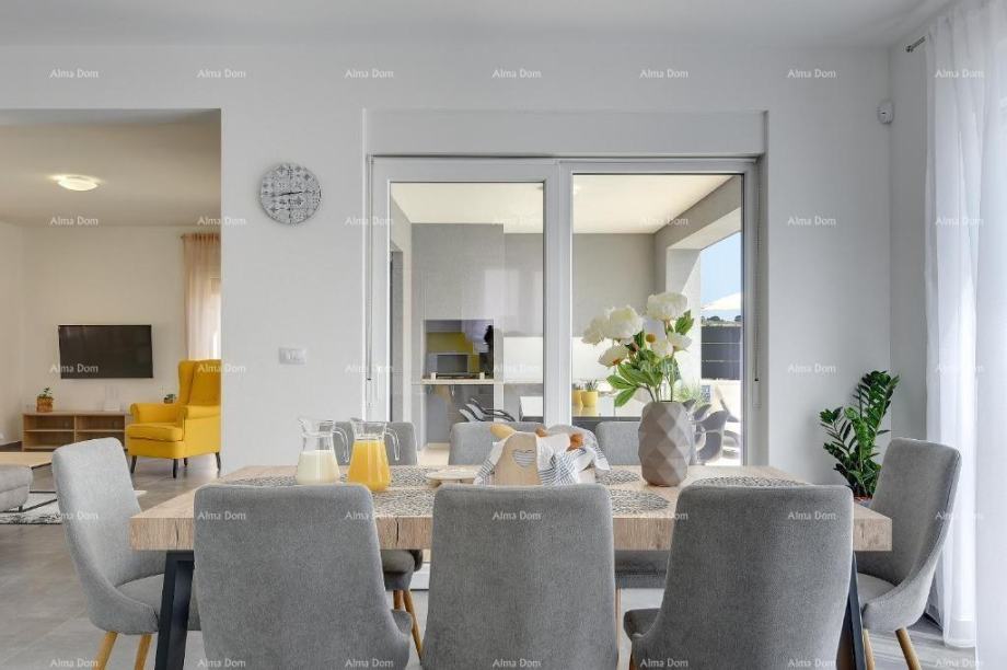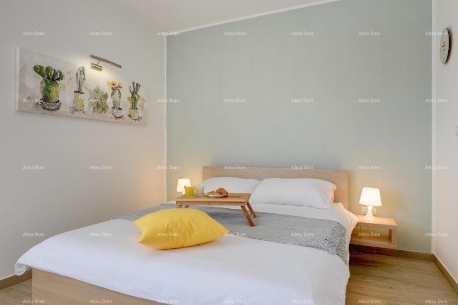 Sastoji se od prizemlja i kata. U prizemlju se nalazi ulazni hodnik, kupaonica, prostrani dnevni boravak te kuhinja s blagavaonciom. Iz dnevnog boravka se izlazi na prostranu terasu gdje se nalazi veliki stol te ljetna kuhinja, te vrt gdje se nalazi sunčakište te bazen veličine 4 x 8 metara. Na katu kuće se nalaze 3 spavaće sobe s kupaonicama.