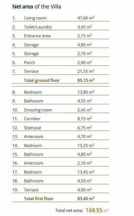 Kuća se nalazi na zemljištu površine 380 m3, a neto korisna površina objekta iznosi 220 m2. Raspoređena je na dvije etaže, prizemlje i kat s mogućnošću izgradnje krovne terase koja može dodatno povećati atraktivnost i vrijednost objekta.