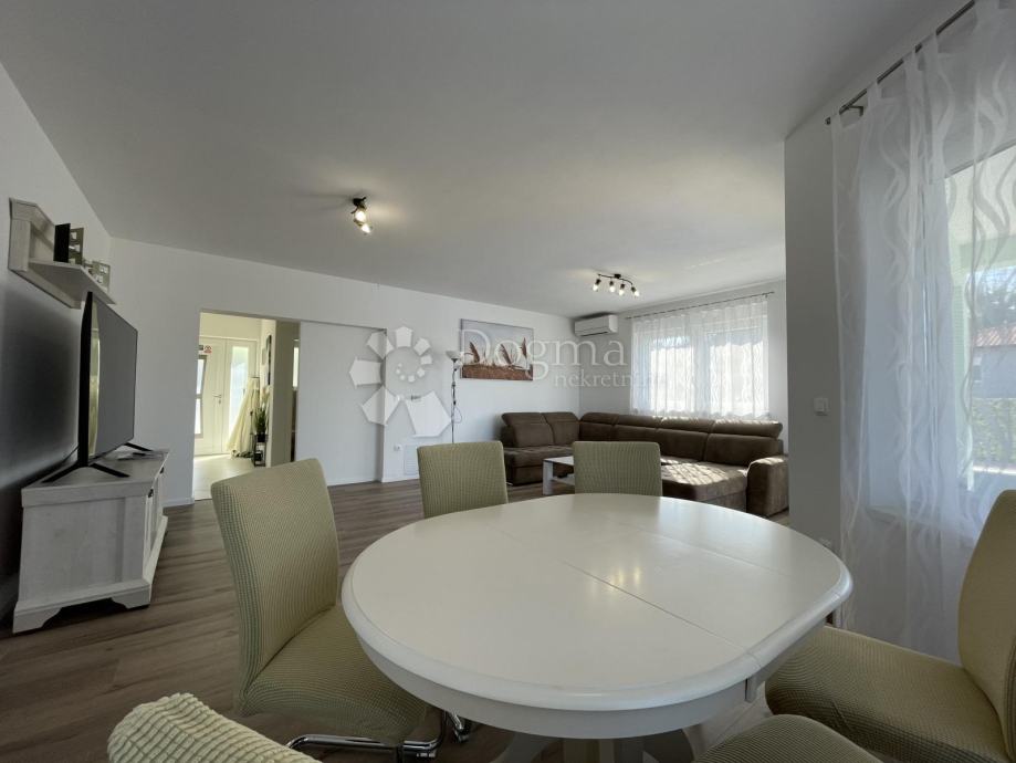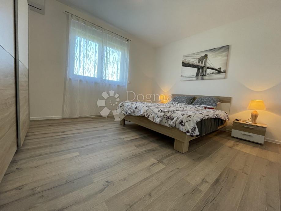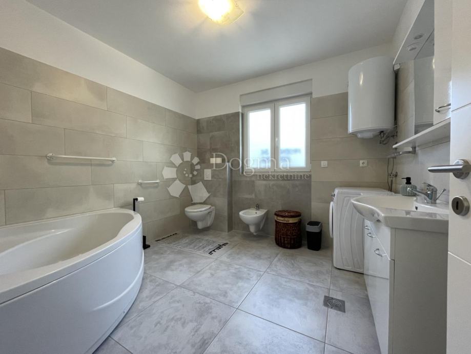 Oprema nekretnine: vrhunska keramika i sanitarna oprema, LVT podne obloge u spavaćim sobama, podno grijanje, klima uređaji u svim prostorijama, kuhinja sa kvalitetnom bijelom tehnikom, bazen obložen pločicama, dvorište popločano porfido kamenom, 10cm fasadni sustav, kvalitetna PVC stolarija.