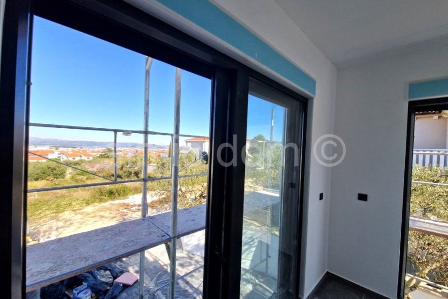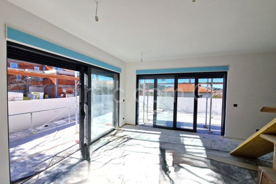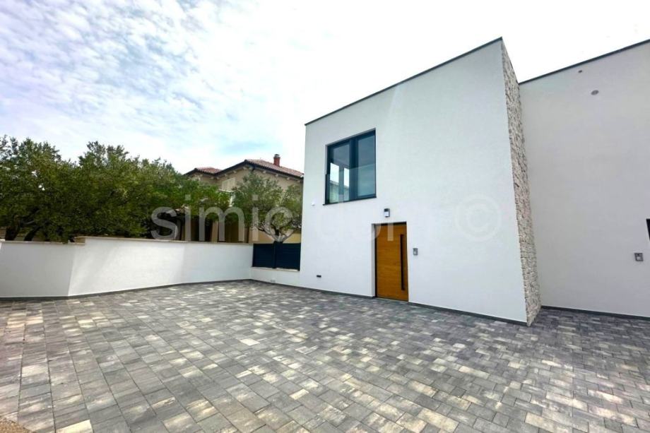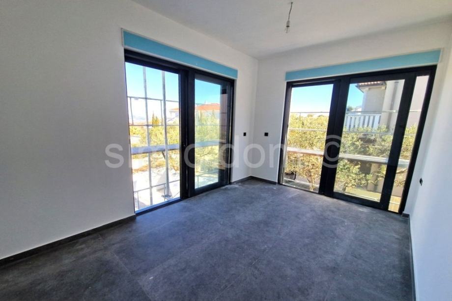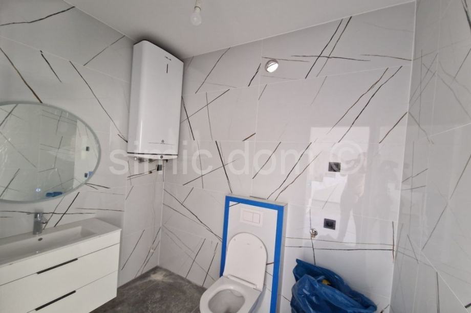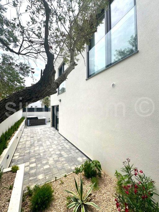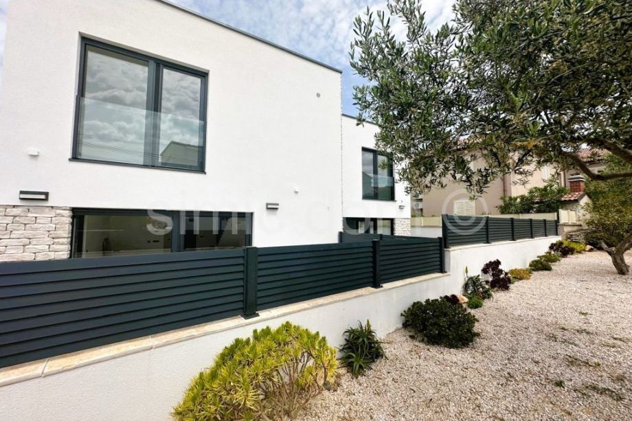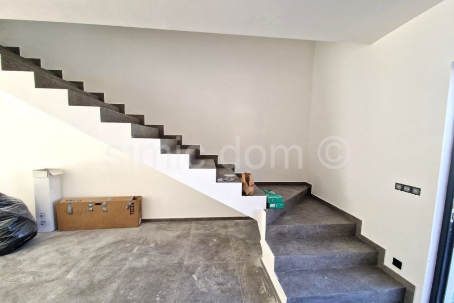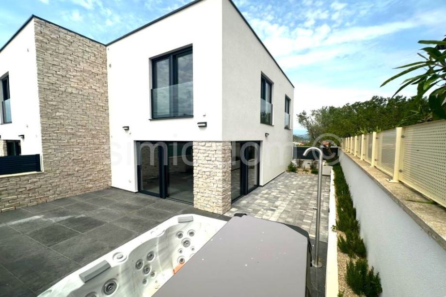 Posredujemo u prodaji dvojne kuće u novogradnji u Murteru, na lokaciji u samom središtu mjesta, a opet na vrlo mirnoj lokaciji. Udaljena je svega 5 minuta pješice do plaže i svih ostalih sadržaja te ima predivan pogled na mjesto i more. Kuća se sastoji od dvije etaže, a ukupne je neto stambene površine 117,26 m2. Na prizemnoj etaži nalazi se kupaonica s WC-om te otvoreni koncept kuhinje, blagovaone i dnevnog boravka. Stepenište vodi na prvi kat na kojem se nalazi kupaonica s WC-om, dvije spavaće sobe i master spavaća soba s vlastitom kupaonicom i WC-om. Kući pripadaju dva parkirna mjesta, a u dvorištu se nalazi i bazen. Zahvaljujući lokaciji kuće, kao i velikim prozorima, cijela kuća ima mnoštvo prirodnog svijetla kroz cijeli dan, a zahvaljujući dobroj izolaciji, grijanje ili hlađenje prostora, biti će brzo i jednostavno. Kuća se oprema visoko kvalitetnim materijalima te raznim modernim i tehnološki naprednim značajkama što osigurava dugovječnost i ugodnost za boravak. Kuća se nalazi u mirnoj ulici blizu svih sadržaja stoga pruža sve prednosti boravka na otoku Murteru. Kuća se prodaje potpuno namještena, a moguća je i kupnja u varijaciji bez namještaja po nižoj cijeni. Očekivani završetak izgradnje je na proljeće 2025.