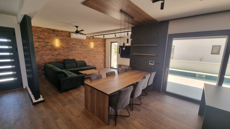 Prodaje se moderna kuća s bazenom u Privlaci. Radi se o kvalitetnoj novogradnji. Iz kuće se pruža odličan pogled na more.