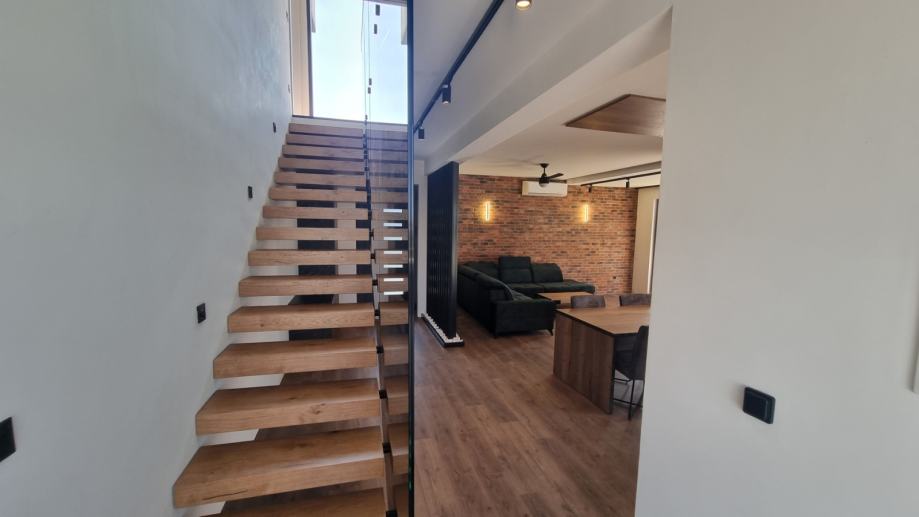 Udaljenost ove nekretnine od mora je samo 110 m, dok je udaljenost od centra Privlake 1 km.OpremaGradnja je izvedena ciglenim termo blokom s termoizolacijom fasade 10 cm stiropor. Prozori su PVC s troslojnim staklom i komarnicima. Podne obloge su pločice i laminat. Nadalje, provedeno je podno električno grijanje kroz cijelu kuću. Osim toga, klima uređaji se nalaze u dnevnom boravku i svim spavaćim sobama. U dvorištu kuće je roštilj. Nadalje, ulazna vrata kuće su protuprovalna. Kuća se prodaje u potpunosti namještena.