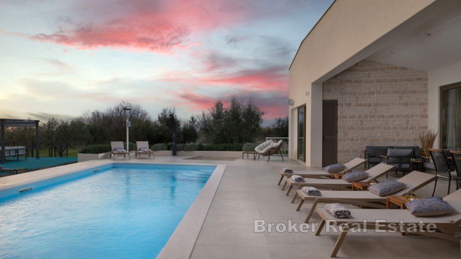 Moderna kuća s bazenom smještena na prostranom zemljištu u mirnom mjestu u Zadru.