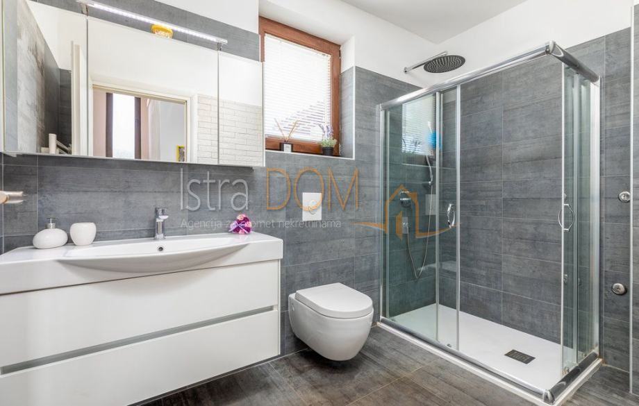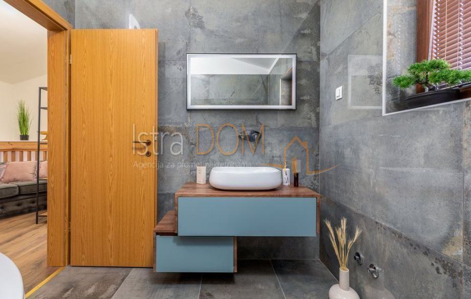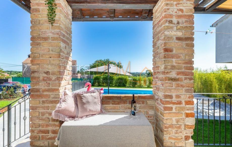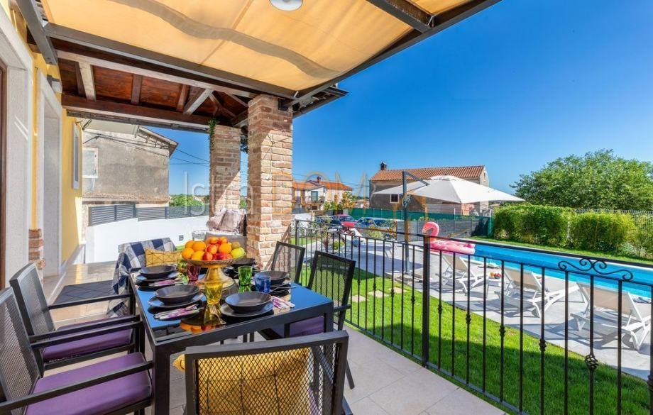 Kuća je građena u istarskom stilu sa kamenim ertama, kamene linde, kameni ćuki, kamene škale i moderna prvoklasna PVC stolarija punjena plinom.