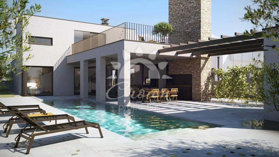Moderna kuća s velikim potencijalom smještena je na izuzetno mirnoj lokaciji i nudi prostrano i luksuzno okruženje za život i opuštanje. Objekt se sastoji od tri spavaće sobe, prostranog dnevnog boravka s velikim staklenim stijenama koje pružaju obilje prirodnog svjetla i osjećaj otvorenog prostora, te visoke stropove koji dodatno naglašavaju moderni dizajn.