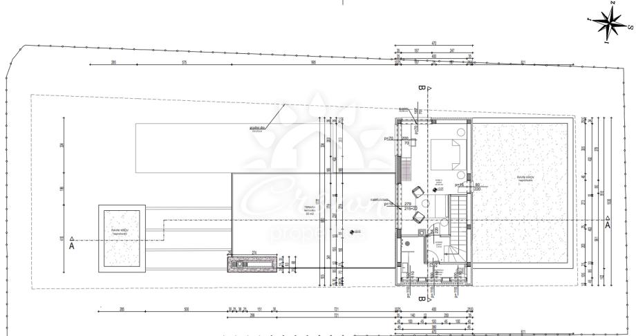 Vanjski prostor uključuje ogromnu terasu s natkrivenim dijelom i sunčalištem, idealnu za druženja i odmor, te veliki, dugi plivački bazen s posebnim prostorom za praonu. Nekretnina nudi više parkirnih mjesta i mogućnost uvođenja podnog grijanja, ostavljajući budućem vlasniku potpunu slobodu uređenja prema vlastitim željama.
