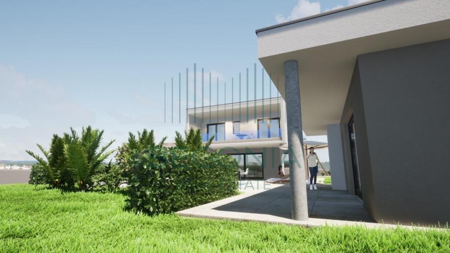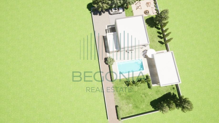 Prostire se na dvije etaže, a okružena je zelenilom i lijepo uređenom okućnicom na kojoj će se nalaziti veliki bazen i pomoćni objekat sa ljetnom kuhinjo, gym-om i kupatilom.