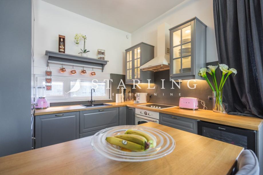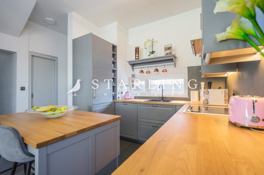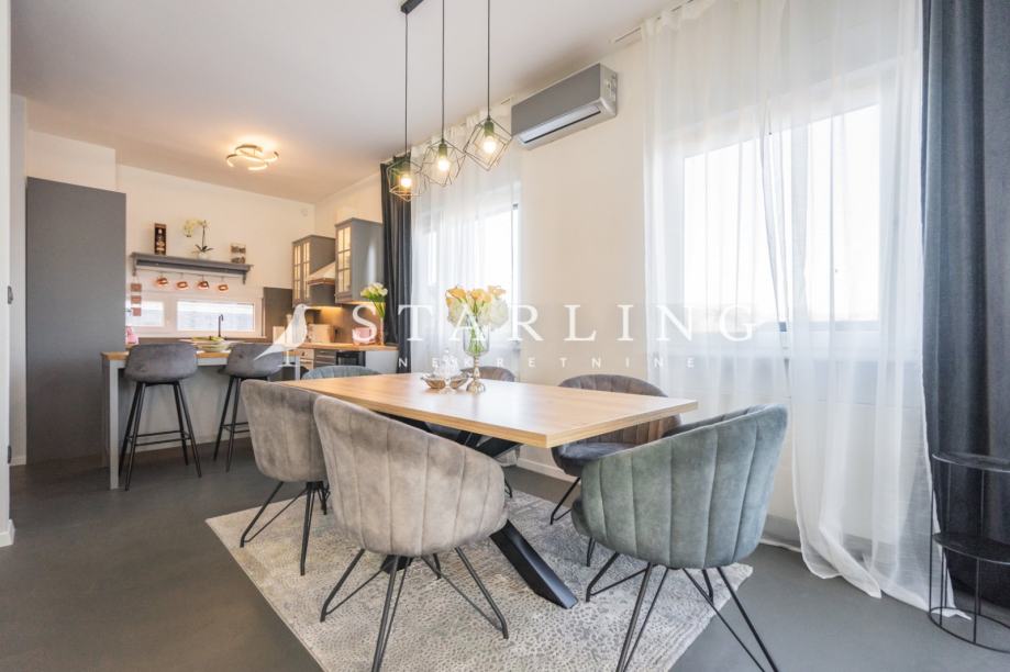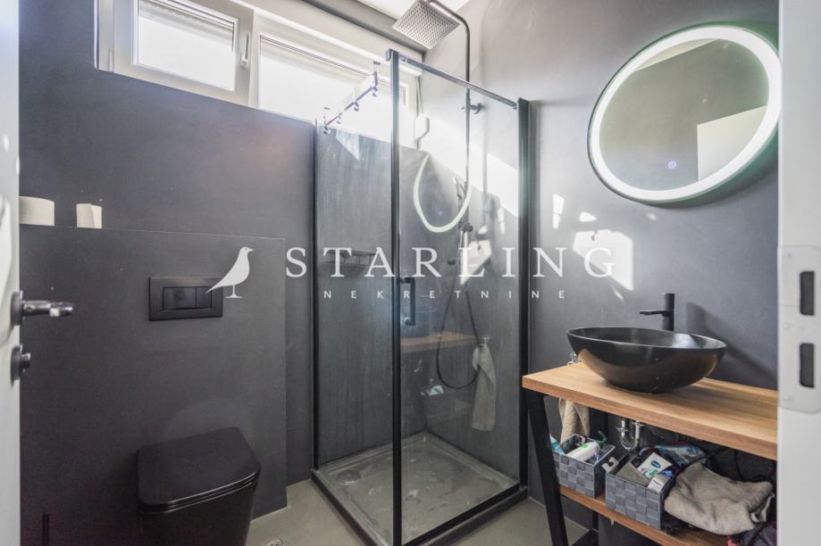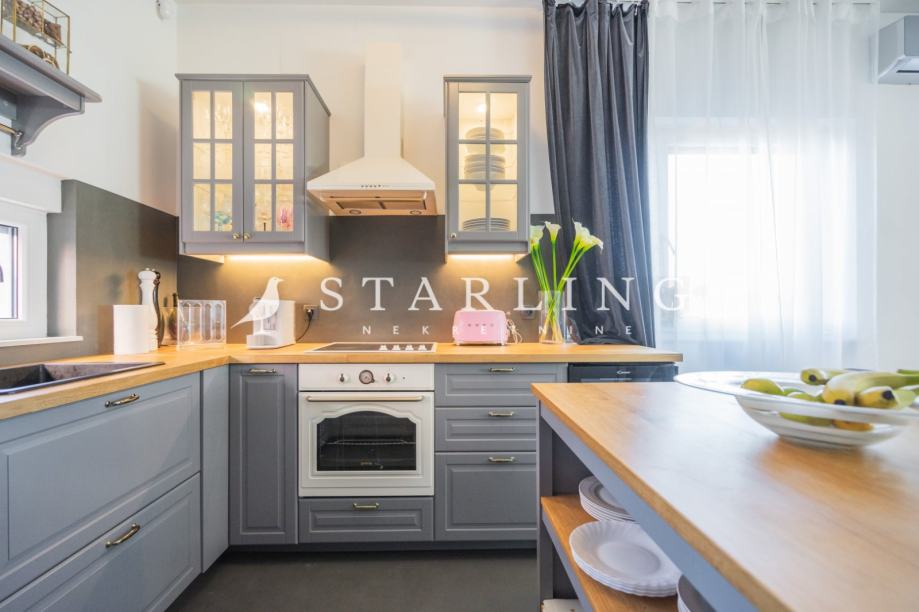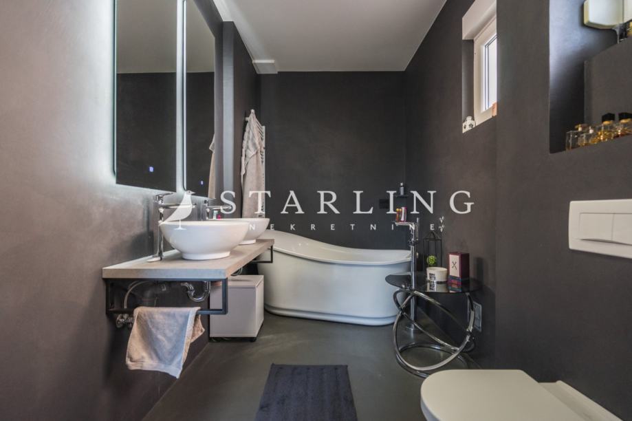 Izuzetno kvalitetno građena kuća opremljena centralnim sustavom usisavanja, vanjskim bazenom, četiri parkirna mjesta, dvije terase, microtopping podovima visokim stropovima i izvedenim pripremama za konobu.