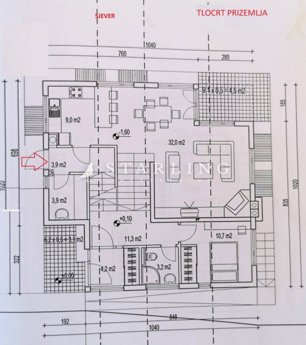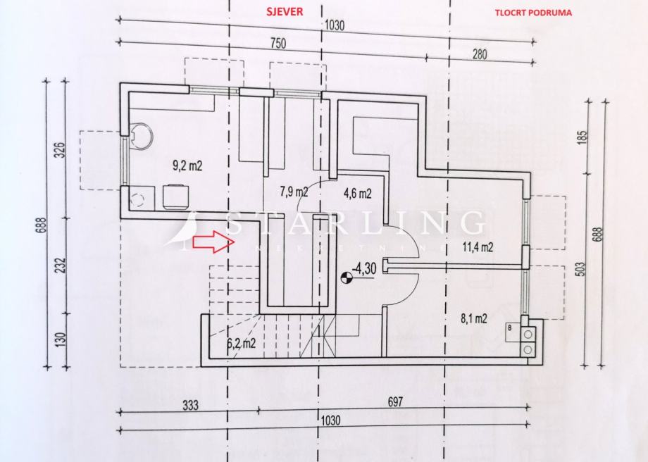1. etaža: open space prostorija, kotlovnica, vešeraj, kupaonica s wc-om i podrumski dio sa zasebnim ulazom namijenjen za konobu