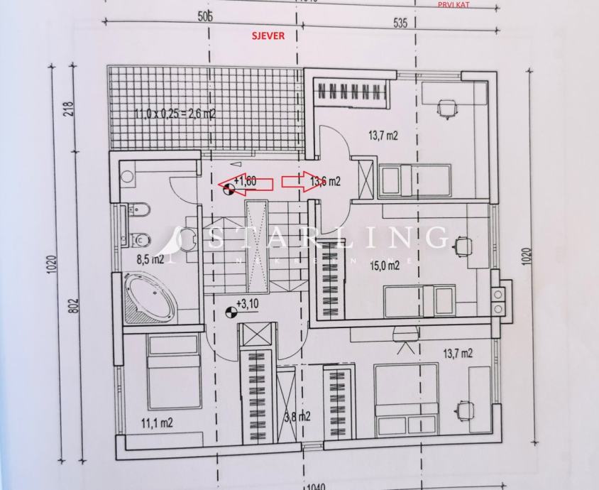 5. etaža: dvije spavaće sobe od kojih je jedna master bedroom s walk in ormarom i kupaonicom