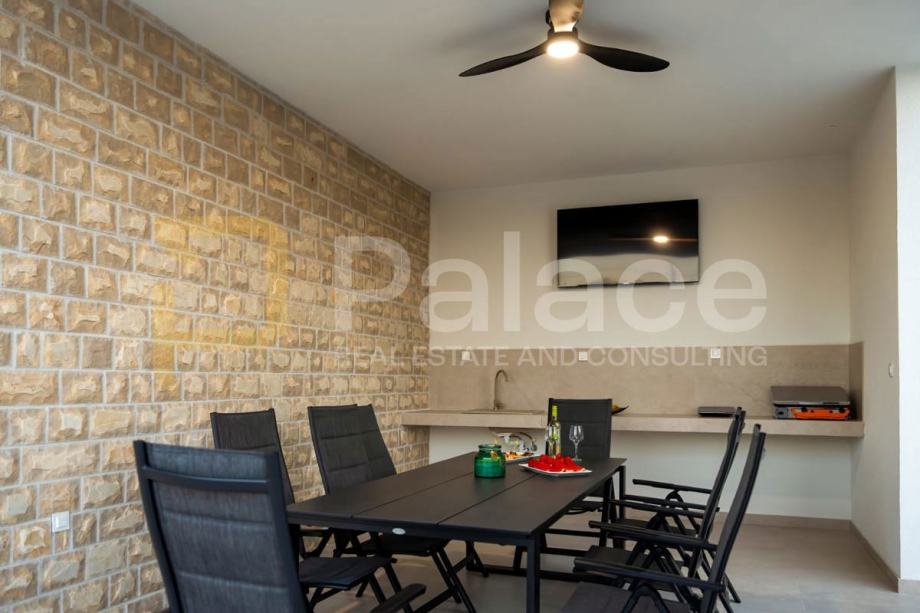 U prizemlju se nalazi open-space kuhinja i dnevni boravak iz kojih imate direktan izlaz na prostranu terasu i natkrivenu ljetnu kuhinju. Ispred vas nalazi se bazen i sunčalište, idealna ljetna oaza za druženje i opuštanje. U prizemlju se također nalazi i wc te velika ostava.