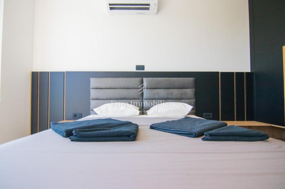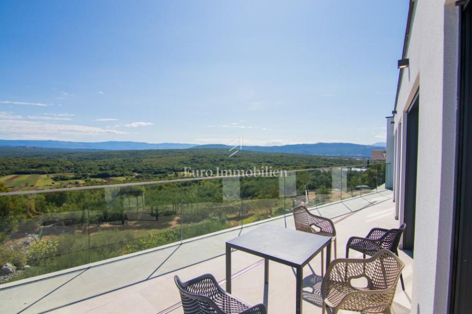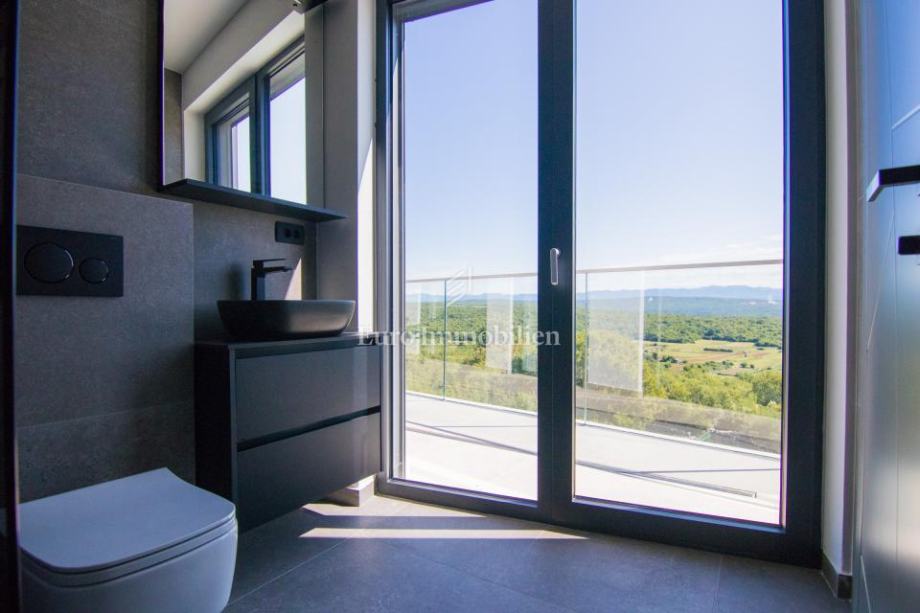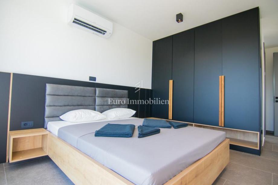 Na katu se nalaze četiri spavaće sobe, četiri kupaonice i hodnik sa stepeništem. Tri spavaće sobe imaju izlaz na zajednički balkon s kojeg se pruža prekrasan pogled na maslinike i more u daljini.