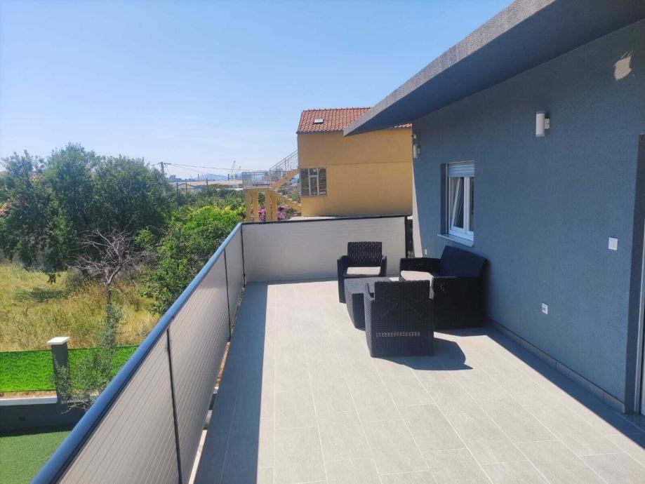 Prodaje se moderna kuća u mirnom naselju u Splitu.Nalazi se na parceli od 386m2, sastoji se od prizemlja koje je trenutno u fazi preuređivanja, te uređenog prvog kata.Obje etaže imaju po 86m2.Uređeni kat sastoji se od ulaznog hodnika, kuhinje s blagovaonicom, dnevnog boravka, 3 spavaće sobe, kupaonice, te zasebnog toaleta.Ispred kuće nalazi se prostran i uređen vrt s bazenom.Opremljen je kvalitetnim uređajima, šifra na ulazu, video nadzor, podno grijanje u cijelom stanu.