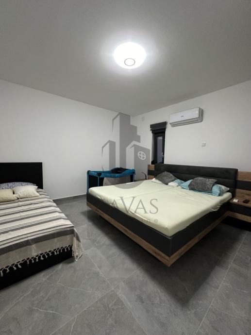 Kuća se sastoji od ulaznog dijela, tri spavaće sobe od kojih svaka ima postavljen TV, prostrane kupaonice sa kompletno namještenom saunom i odvojenog wc-a, kuhinje s blagovaonicom, dnevne sobe i ostave.