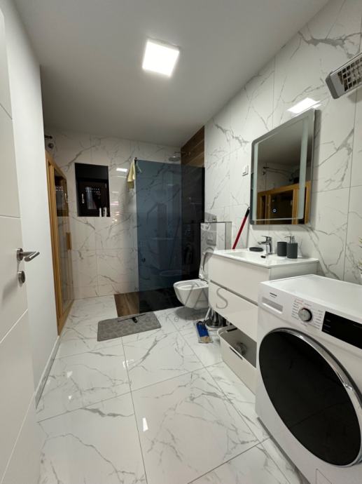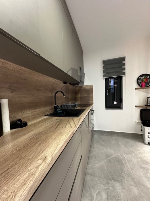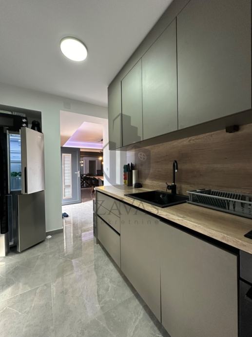 Interijer je ukusno uređen spojem modernih i klasičnih elemenata, s visokokvalitetnim materijalima i namještajem koji odiše sofisticiranošću i udobnošću.