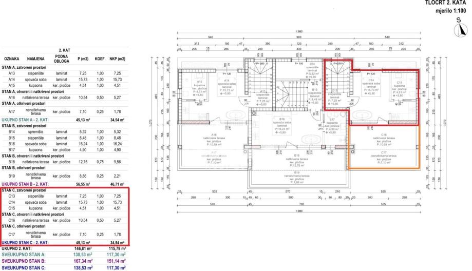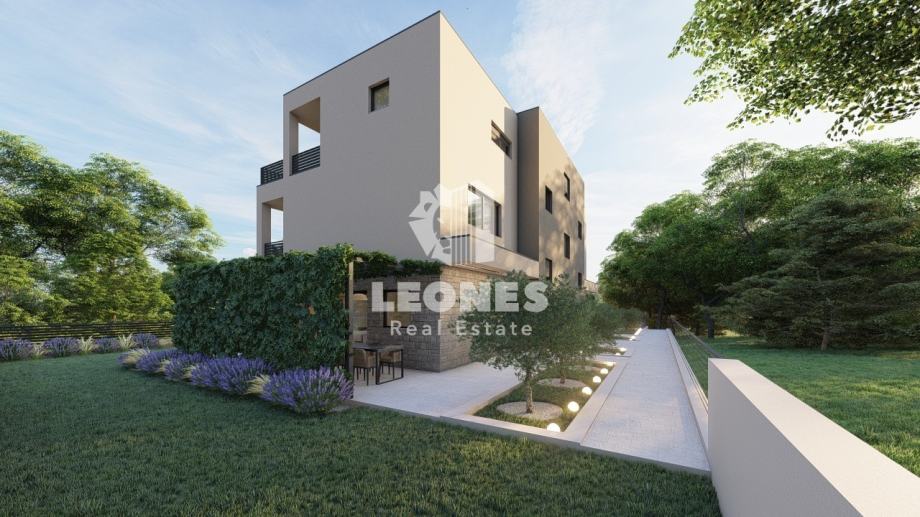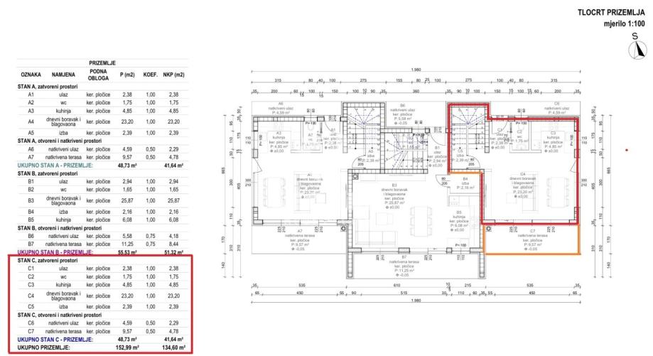 Prodaje se moderna kuća u nizu (jedinica C) u blzini Umaga. Neto korisna površina kuće je 117,38 m2 dok je površina okućnice oko 200 m2. U prizemlju se nalaze wc, ostava, kuhinja s blagovaonom i dnevni boravak koji ima izlaz na natkrivenu terasu. Na prvome katu su smještene 2 spavaće sobe od kojih jedna ima izlaz na natkrvivenu terasu i kupatilo. Na drugom katu je smještena spavaća soba s vlasitim kupatilom te velikom terasom s koje će se pružati pogled na more.