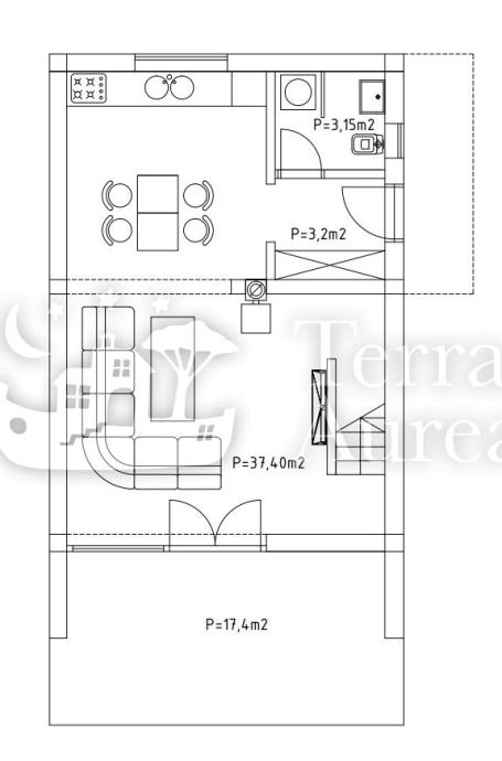 Prizemlje će sadržavati ulazni dio, prostrani dnevni boravak s kuhinjom i blagovaonicom te wc. Na prvom katu, ulazni dio vodi do dvije prostrane spavaće sobe i moderno opremljene kupaonice.