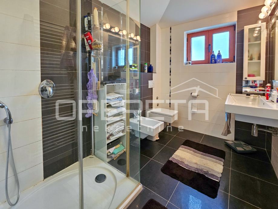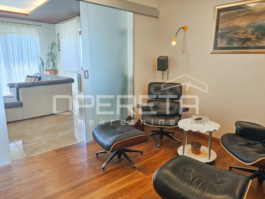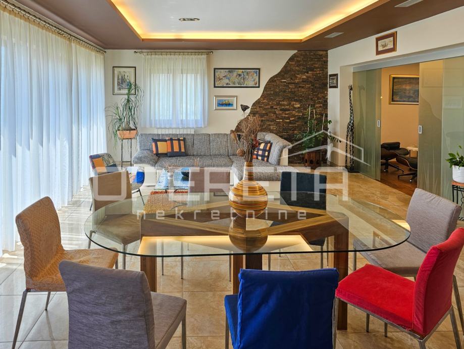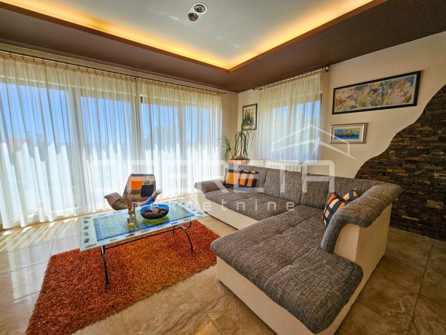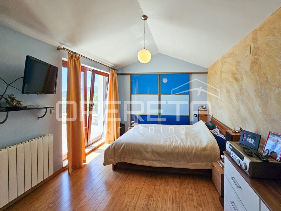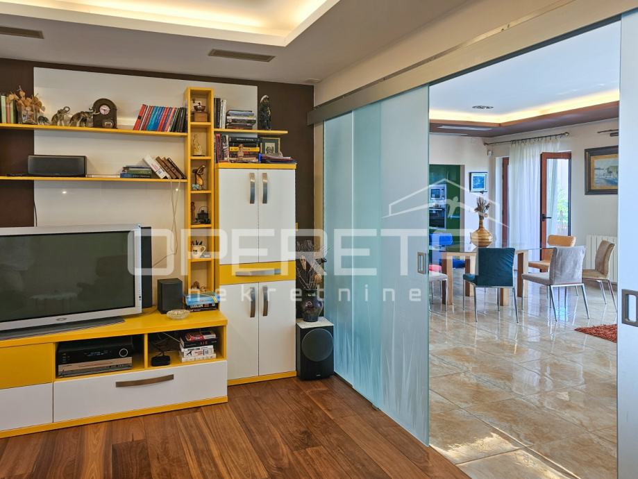 Uz dnevni boravak, smještena je TV soba u kojoj se posebno ističe pod od američke trešnje, domaće renomirane tvrtke Požgaj, što prostoru daje ton luksuza i ugode.