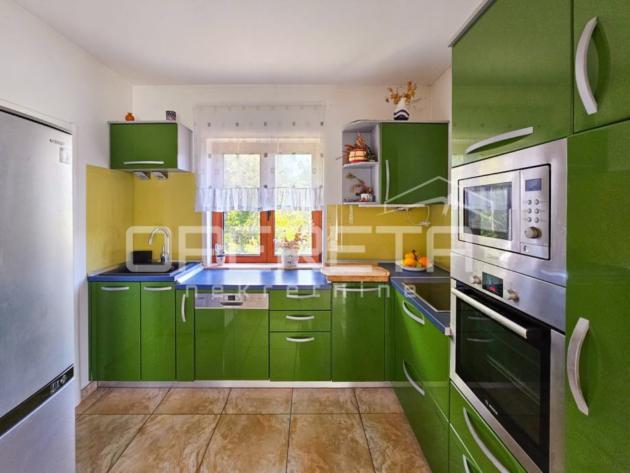 Kuhinja je potpuno opremljena i funkcionalna, a njezin dodatak je velika kuhinjska ostava.