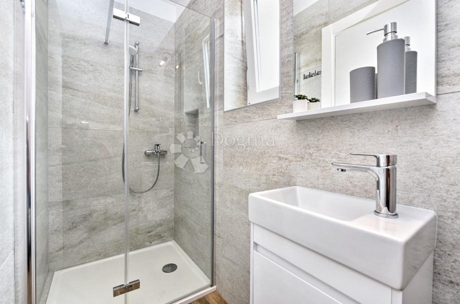 Kuća ima ravan krov popločen kao krovna terasa od 125 m², s koje se pruža očaravajući panoramski pogled na more. Osim toga, pogled na more dostupan je i s terasa na prvom katu, gdje se nalaze spavaće sobe – savršen način da započnete dan uz prirodnu ljepotu.