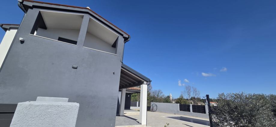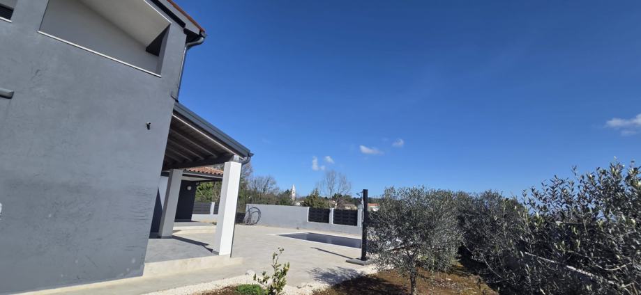 U mirnom istarskom mjestu Krnica prodaje se moderna kuća u izgradnji s bazenom, idealna za one koji traže luksuzan dom ili investiciju u turizam. Ova elegantna nekretnina prostire se na 170 m² kroz prizemlje i kat te nudi predivan pogled na more.