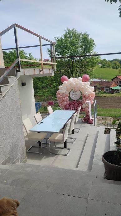 Casa Bella Nekretnine iz ponude izdvaja kuću smještenu 13 km od Zaprešića i 20 km od Zagreba, u mirnoj ulici bez susjeda. Kuća se prostire na prizemlju, katu i potkrovlju. Prizemlje uključuje kuhinju s blagovaonicom, kupaonicu, spremište i prostor koji može služiti kao spavaća soba ili dnevni boravak. Na katu se nalaze dnevni boravak, dvije spavaće sobe i kupaonica. Potkrovlje je u ROHBAU fazi i može se adaptirati u dvije manje sobe s kupaonicom i balkonom, ili u jednu veliku master sobu.