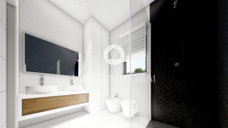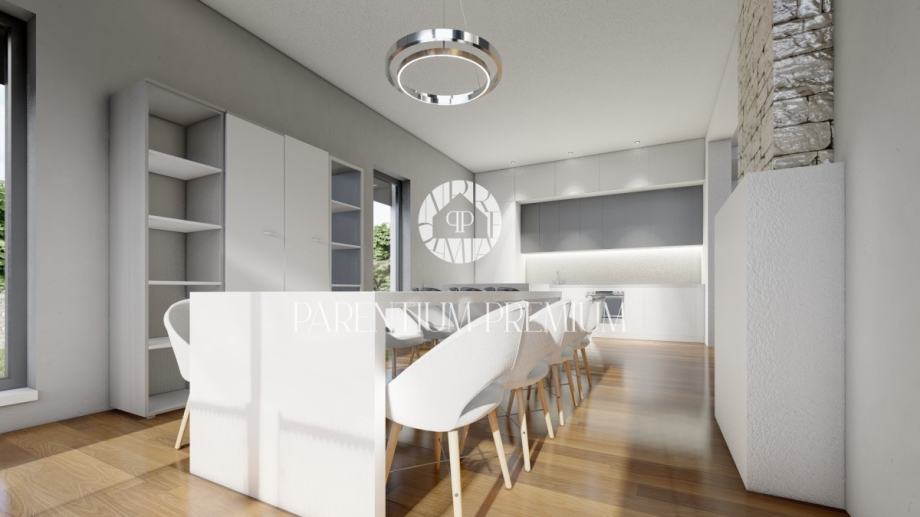 Vila se sastoji od 2 etaže u kojima će se nalaziti iznimno osvijetljeni prostrani dnevni boravak sa kuhinjom i blagovaonom, u kojemu će se još nalaziti kamin za idiličan zimski ugođaj. 4 spavaće sobe sa vlastitim kupaonama i pripadajućim terasama gdje će budući vlasnici uživati uz zalaske sunca. 1 gostinjski toalet i 2 ostave upotpunjuju sadržaj ove iznimne vile.