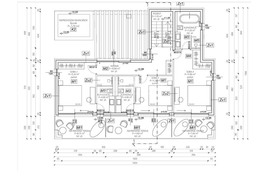 Na katu su smještene tri spavaće sobe i tri kupaonice, uz natkrivene terase koje dodatno pojačavaju doživljaj privatnosti i odmora. Posebna prednost je podno grijanje u spavaćim sobama i kupaonicama, što osigurava dodatnu udobnost u svim godišnjim dobima.