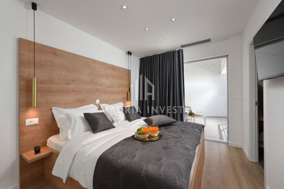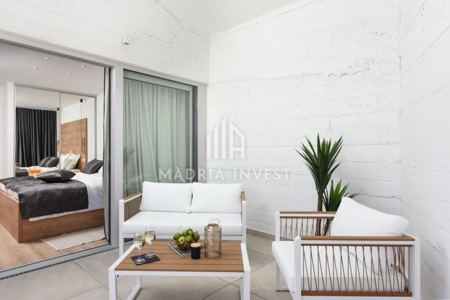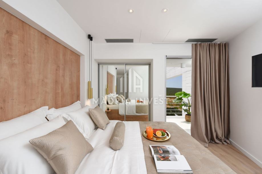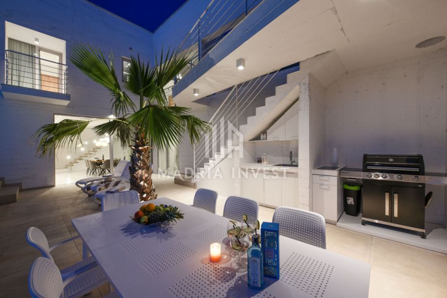Vila se nalazi na zemljištu ukupne površine 500 m2 uz 200 m2 korisne površine. U prizemlju se nalaze 1 spavaća soba s pripadajućom kupaonicom i WC-om, blagovaona, dnevni boravak i kuhinja. Na slikama se također mogu vidjeti stepenice koje vode na prvi kat vile gdje se nalaze dodatne 3 en-suite spavaće sobe s pripadajućim balkonima. Na istom katu se nalazi i veliki jacuzzi kojega krasi prostrani panoramski pogled, ali i pogled na bazen koji se nalazi u prizemlju površine 32 m2.