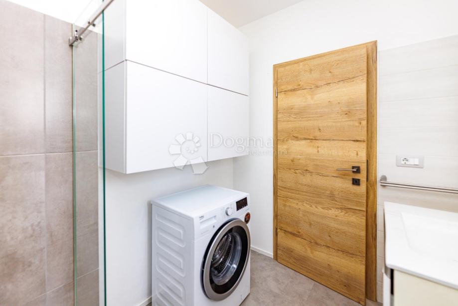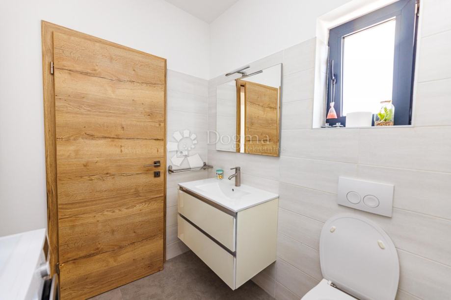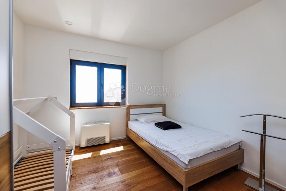 Vanjski dio sadrži grijani bazen,vrt i prostrani parking za više automobila,od toga su i dva natkrivena parking mjesta.