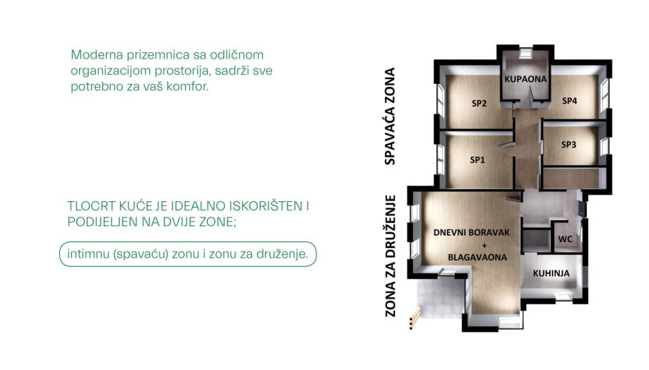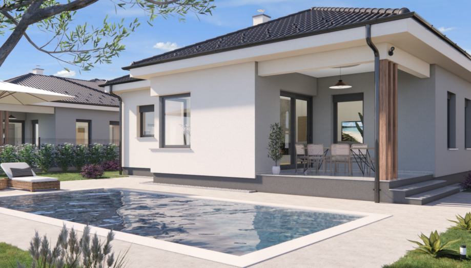 Moderna prizemnica u skladu sa današnjim potrebama svake obitelji, osvojiti će Vas svojim šarmom i intimnošću.
