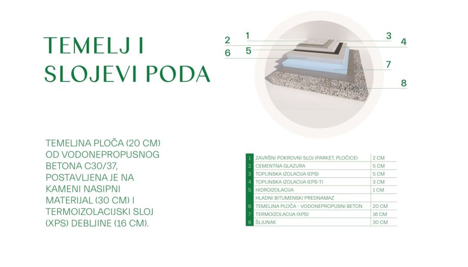 • PVC stolarija visoke kvalitete ral montaža (A-klasa profila i okova, niskoemisiono troslojno izo-staklo punjeno argonom, low e-a premaza, 6-komorni sustav, 3 razine brtvljenja)
