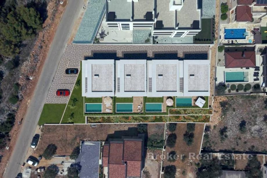 Okućnica vile sastoji se od parkinga, zelenih površina, nenatkrivene terase i privatnog bazena od 24 m2.