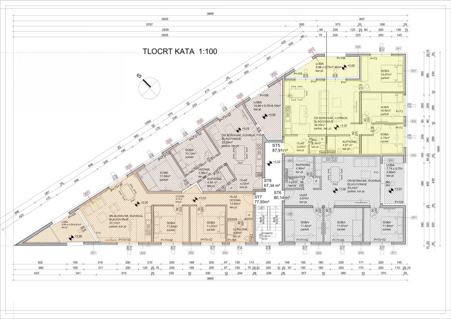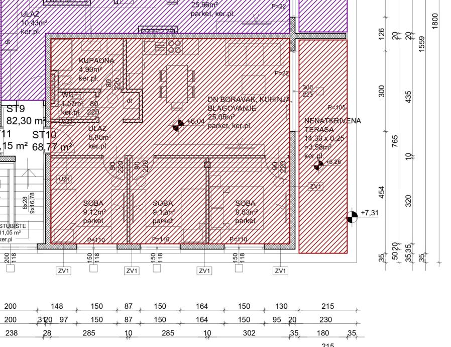 10. PRODANO Četverosobi stan na uvučenom katu oznake ST10, podne površine 65,19 m², koji se sastoji od ulaza, kupaone, wc-a, dnevnog boravka, blagovaonice i kuhinje i tri sobe s terasom na uvučenom katu podne površine 14,30 m², kojem pripada parkirno mjesto oznake PM6 u prizemlju podne površine 12,50 m²