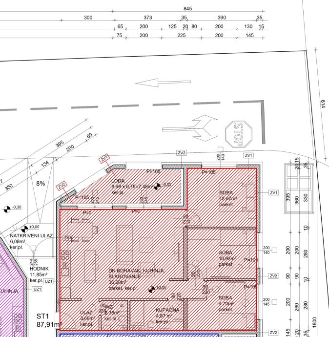 8. Trosobni stan na katu oznake ST8, podne površine 59,18 m², koji se sastoji od ulaza, hodnika, kupaone, dnevnog boravka, blagovaonice i kuhinje i dvije sobe s lođom na katu podne površine 10,88 m², kojem pripada parkirno mjesto oznake PM3 u prizemlju podne površine 12,50 m²