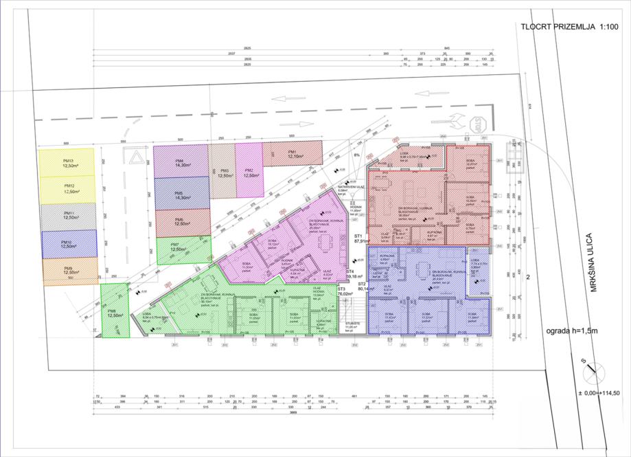 1. Četverosobi stan u prizemlju oznake ST1, podne površine 80,43 m², koji se sastoji od ulaza, kupaone, wc-a, dnevnog boravka, blagovaonice i kuhinje i tri sobe s lođom u prizemlju podne površine 9,98 m², kojem pripada parkirno mjesto oznake PM1 u prizemlju podne površine 12,10 m²