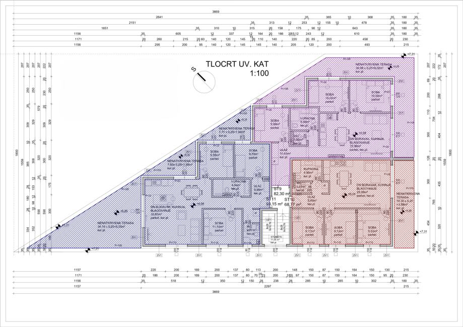 11. Četverosobi stan na uvučenom katu oznake ST11, podne površine 80,71 m², koji se sastoji od ulaza, kupaone, wc-a, dnevnog boravka, blagovaonice i kuhinje i tri sobe s terasom na uvučenom katu podne površine 7,75 m², terasom na uvučenom katu podne površine 7,80 m², terasom na uvučenom katu podne površine 34,196 m²kojem pripada parkirno mjesto oznake PM5 u prizemlju podne površine 14,75 m²