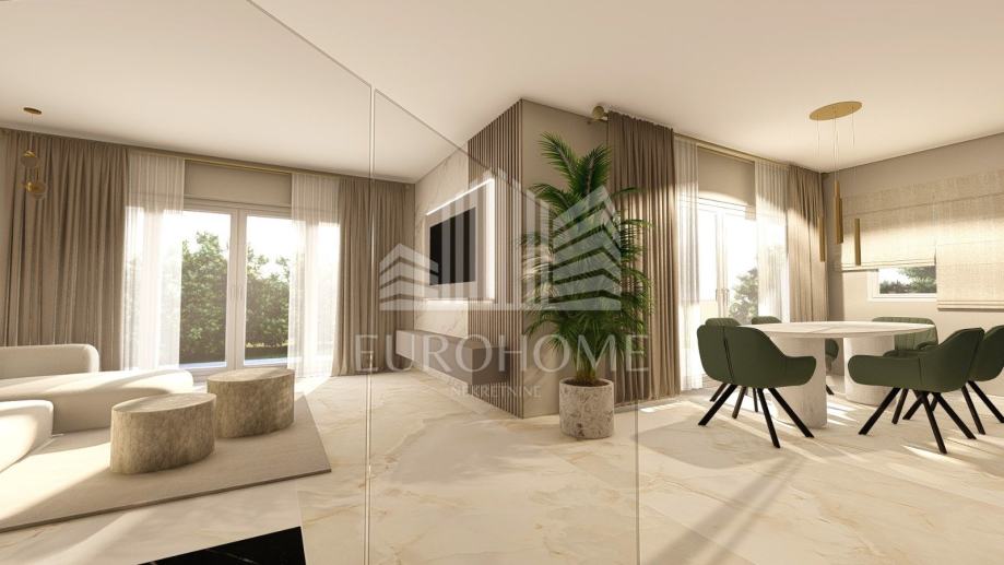 Ova prekrasna vila prodaje se s ekskluzivnim namještajem i opremom. Kuhinja rađena po mjeri i potpuno opremljena kvalitetnim uređajima( perilica suđa, pećnica i indukcijska ploča za kuhanje, te ugradbeni frižider) . Svaka spavaća soba opremljena je udobnim boxspring krevetima, ugradbenim ormarima i televizorom, dok jedna ima i vlastitu kupaonu Prostrani dnevni boravak sadrži modernu sjedeću garnituru s televizorom i stolićem. Blagovaona je s elegantnim stolom i stolicama za uživanje u obrocima. Moderna rasvjeta je ugrađena kroz cijeli unutarnji i vanjski prostor