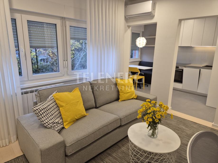 Jarun, prekrasno uređena, u potpunosti renovirana i potpuno namještena garsonijera površine cca 36 m2 na 2. katu zgrade na mirnoj lokaciji, s pogledom na park i u blizini Jarunskog jezera.