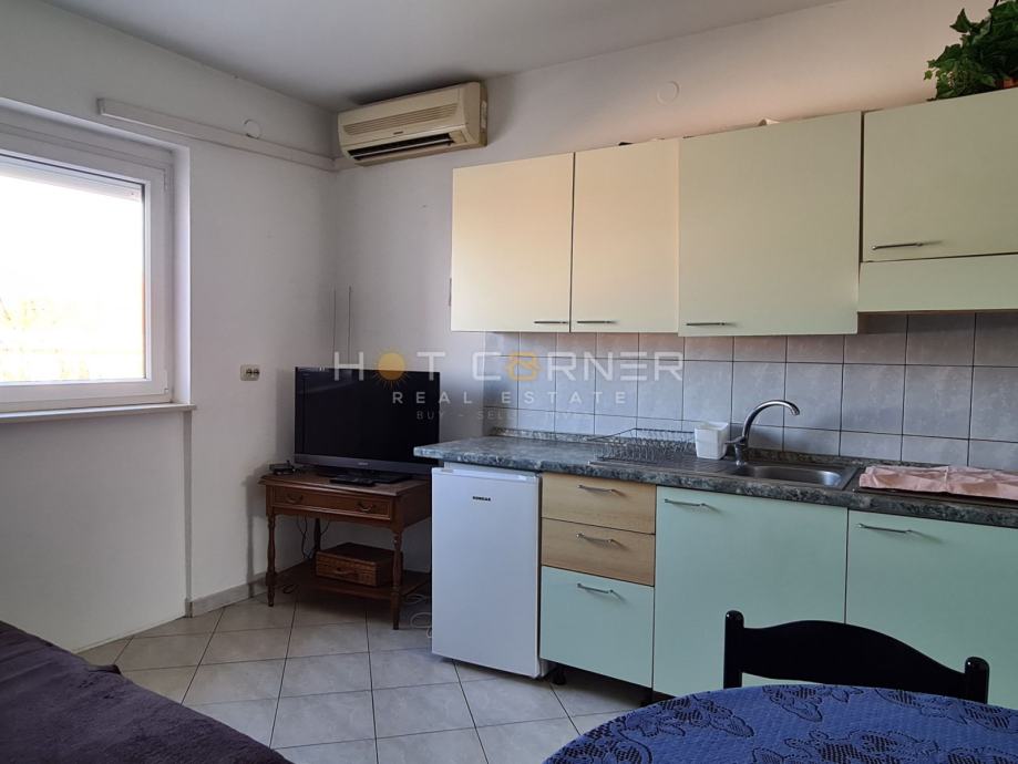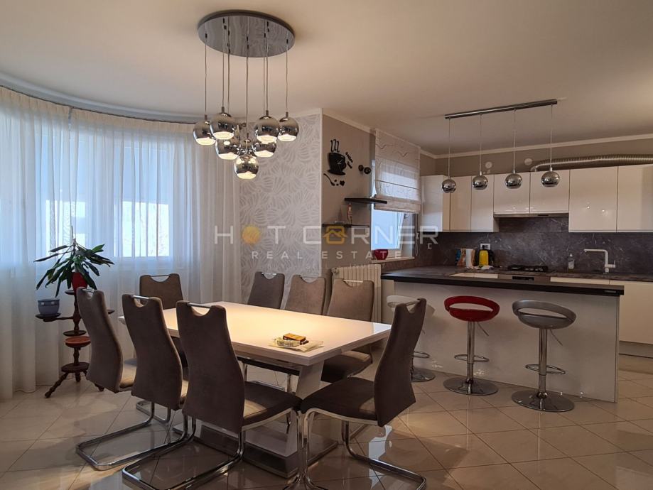 s blagovaonicom i dnevnim boravkom, sve u open space konceptu te mala ostava.Kuhinja je