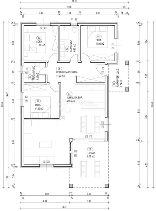 Niskoenergetska montažna kuća je izuzetno energetski efikasna sa 33 cm izolacije u vanjskim zidovima, što osigurava minimalne troškove grijanja i hlađenja.