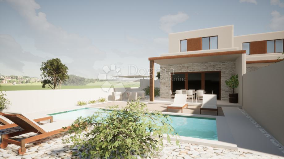 Zadovoljstvo nam je predstaviti novi projekt ove prekrasne dvojne vile sa bazenom. Na rubu sela, u mirnom predjelu s pogledom na prirodne ljepote smješten je ovaj moderni dvojni objekt, čiji su investitori arhitekti s višegodišnjim iskustvom u projektiranju, građenju i opremanju objekata.