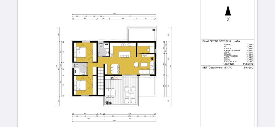 Takodjer je u prizemlju još jedan dodatni wc za goste ! Zimski vrt i terasa u prizemlju gledaju na bazen kao i terasa sa gornjeg Kata koja nudi pogled na bazen kao i daleki pogled prema mjestu gaćelezima !
