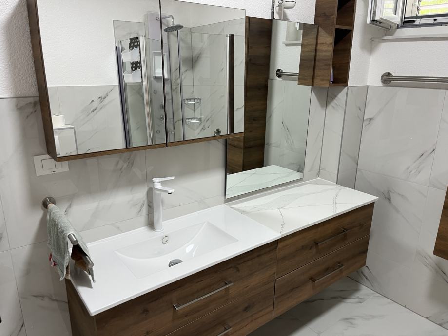 Sve 4 Kupaonice opremljene su modernim sanitarijama i kupatilskim namještajem kao i dotatni 5. pomoćni wc kao i još jedan daljnji 6. vanjski wc kraj bazena …