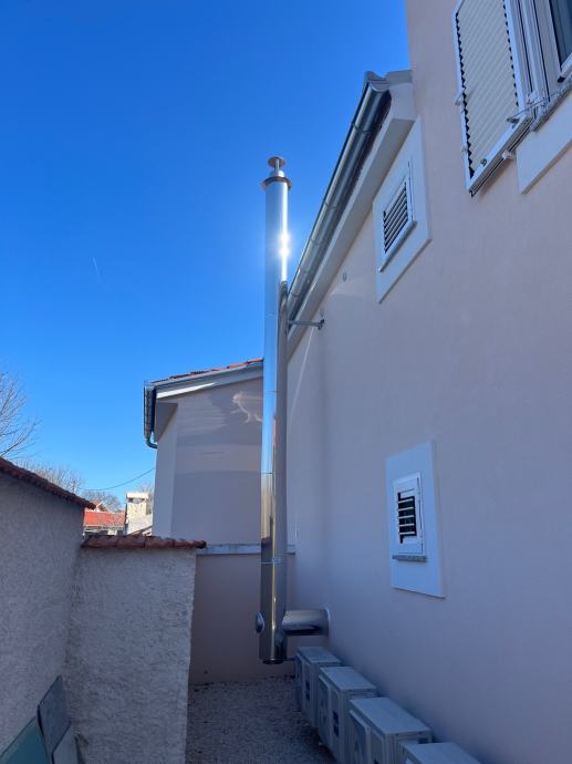 ugradjen je vanjski inoxov dimnjak za prizemlje i možete kupit si i ugradit lako peć na drvo ili na pelete , koja može grijati cjelo prizemlje ako želite i zimi