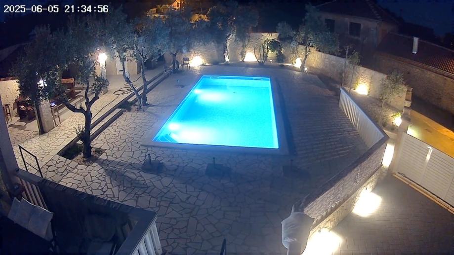 Bazen je opremljen najmodernijom tehnikom sa automatskim doziranjem pripravaka za kvalitetu vode i sa toplotnom pumpom za grijanje vode u njemu kao i sa solarnim rolo- pokrivačem ! Suvremena keramika i svjetlo daju posebni ugođaj !